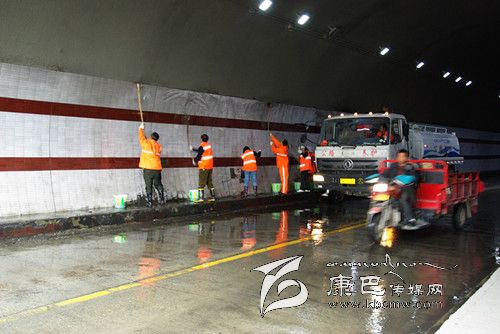 4月2日,瀘定公路分局瀘定黨小組組織機關黨員干部開展黨員義務勞動活動,對國道二康路紅軍橋隧道進行了大清洗。清洗采用以隧道清洗車為主、人工清洗為輔的作業(yè)方法,并安排專職交通指揮人員配合作業(yè)人員對清洗路段進行了交通管制,以確保作業(yè)人員及過往車輛行人的安全。同時,組織公路養(yǎng)護人員對兩條省道隧道內的燈具、內壁和反光標牌標線等進行了清洗。(賀淑明 攝)