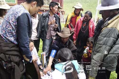 計(jì)生指導(dǎo)站醫(yī)護(hù)人員在免費(fèi)為群眾測量血壓。