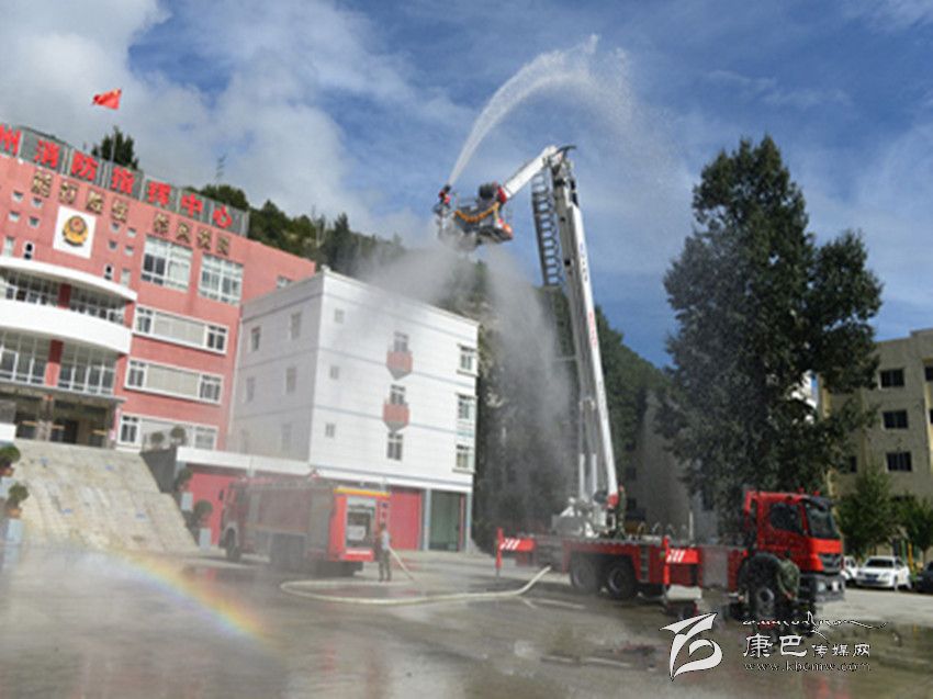 本網(wǎng)訊(劉國(guó)謙文/圖)9月8日上午,甘孜消防支隊(duì)操場(chǎng)衛(wèi)聳立著一道“銀色天梯”,筆者在現(xiàn)場(chǎng)目擊了 DG-32C登高平臺(tái)消防車(chē)的變形過(guò)程。隨著 4個(gè)支撐架的展開(kāi),車(chē)體被架離地面,登高平臺(tái)臂緩緩上升,如“擎天柱”般伸向云端。在兩名駕駛員的配合操作下,平臺(tái)頂端配載的水炮噴射出一條長(zhǎng)長(zhǎng)的水龍,隨著水壓漸漸加大,奔騰的水龍帶著一道彩虹劃過(guò)高空,成為云端深處一道壯觀的麗景。