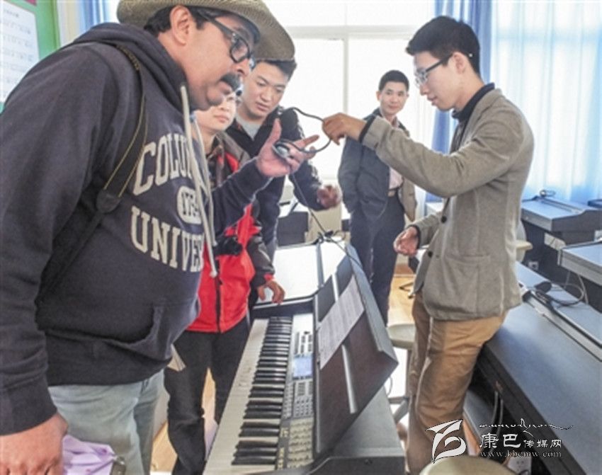 隨后,達哈爾·阿斯毫克一行來到教學區(qū),通過參觀學生閱讀室、多功能音樂訓練室、多媒體教室了解了該校的硬件設(shè)施建設(shè)和綜合發(fā)展情況。在學生閱讀室,達哈爾·阿斯毫克和同伴們認真聽取了學校工作人員關(guān)于閱讀室內(nèi)圖書種類、圖書使用情況的介紹;當發(fā)現(xiàn)其中有不少圖書是鄉(xiāng)城的地方性著作時,一名尼泊爾記者當即感慨“太了不起了!”。親自試用教室里陳放的電子鋼琴之后,印度《西隆時報》德里站首席記者納亞克表示,“眼前所看到的一切然我對中國教育的發(fā)展感到驚奇。”他這一說法也很快引起同行者的共鳴。