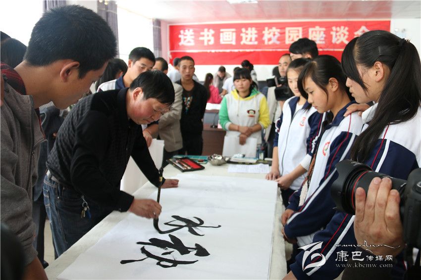 州關(guān)工委領(lǐng)導(dǎo)送書畫進(jìn)校園。
