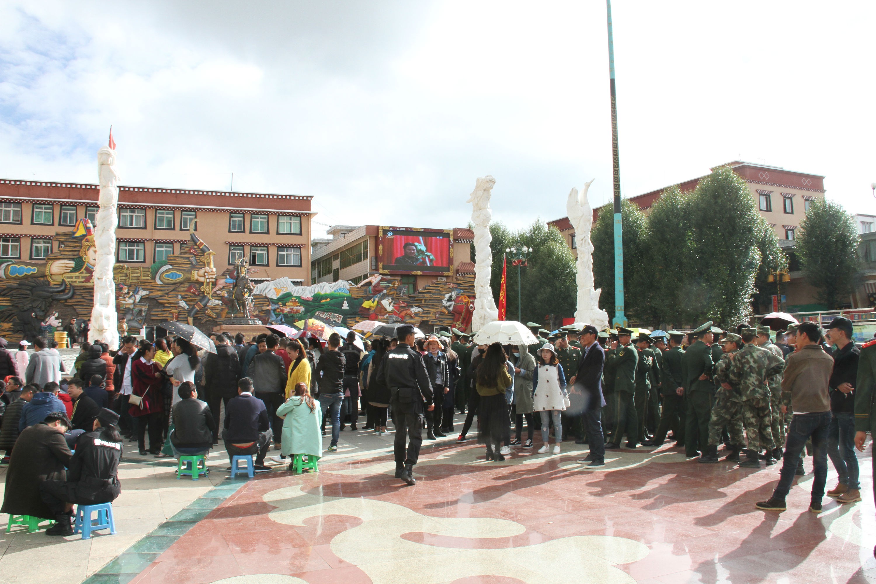 理塘縣格薩爾廣場上近千名干群收看大會盛況。