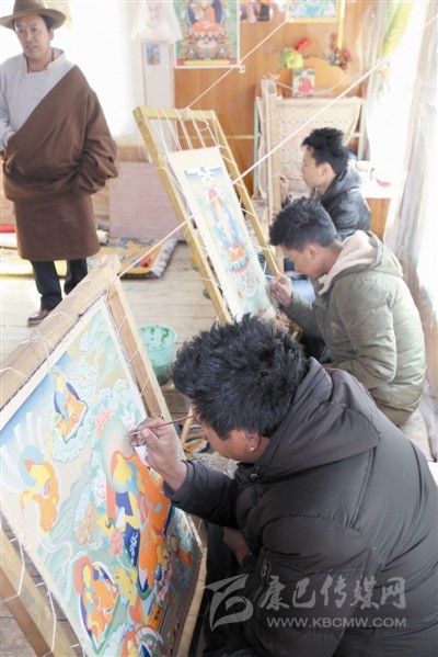 白玉河坡省級非遺代表性傳承人根秋單貞指導唐卡繪畫。