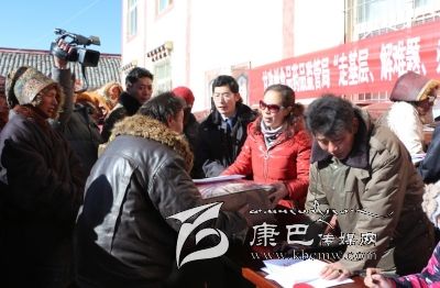 活動(dòng)中,工作組同蒙宜鄉(xiāng)黨委、政府和該鄉(xiāng)幸福二、三村兩委班子負(fù)責(zé)人召開(kāi)座談會(huì),詳細(xì)了解鄉(xiāng)、村兩級(jí)基層組織建設(shè)工作開(kāi)展情況,群眾生產(chǎn)生活、子女入學(xué)及該鄉(xiāng)三座寺廟長(zhǎng)效機(jī)制建設(shè)等情況。工作組用藏漢雙語(yǔ)向結(jié)對(duì)親戚深入宣講了黨的十八屆三中全會(huì)、省委經(jīng)濟(jì)工作會(huì)議和州委十屆五次全會(huì)精神,重點(diǎn)宣講了法治甘孜建設(shè)、基層黨建工作年、群眾工作等安排和要求,發(fā)放了食品藥品安全宣傳資料150余份和價(jià)值2.8萬(wàn)余元的毛毯。同時(shí),工作組分別與親戚共簽了結(jié)對(duì)認(rèn)親卡,認(rèn)真聽(tīng)取了群眾對(duì)開(kāi)展結(jié)對(duì)認(rèn)親活動(dòng)和基層組織建設(shè)的意見(jiàn)、建議。
