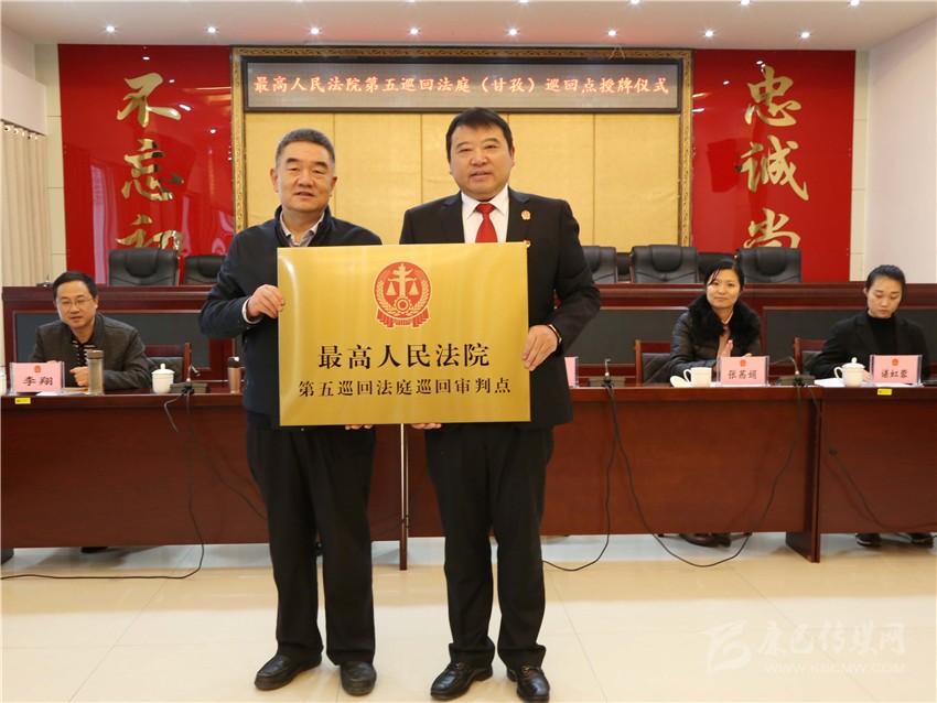 本網(wǎng)訊 11月13日,最高人民法院第五巡回法庭(甘孜)巡回審判點(diǎn)授牌儀式在甘孜州中級(jí)人民法院舉行,此次在四川設(shè)立兩個(gè)巡回點(diǎn),州中級(jí)人民法院是授牌點(diǎn)之一。最高人民法院第五巡回法庭分黨組成員、副庭長(zhǎng)汪國(guó)獻(xiàn)為該院授牌并在儀式上作講話,甘孜州中級(jí)人民法院黨組書記、代理院長(zhǎng)付寶接牌并作相關(guān)工作匯報(bào)。
