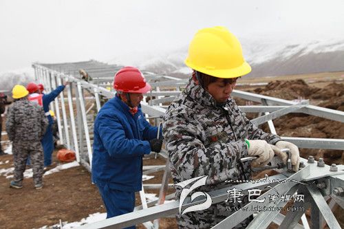 石渠縣海拔高,長(zhǎng)冬無(wú)夏,空氣含氧量?jī)H為成都平原的45%,電力建設(shè)面臨著“高原高寒缺氧、生態(tài)環(huán)境脆弱、凍土區(qū)沼澤區(qū)施工”等世界性難題。在這里走路稍微快一點(diǎn)都要大口喘氣,更何況在高山雪地上施工,搬運(yùn)建材,其施工難度可想而知。石渠至洛須110KV工程是國(guó)網(wǎng)成都供電公司承擔(dān)“電力天路”工程項(xiàng)目中唯一一條110kV電壓等級(jí)線(xiàn)路工程,是連接石渠變電站和在建的110kV洛須變電站的主要電力通道,線(xiàn)路全長(zhǎng)為64.268km,新建鐵塔187基,沿線(xiàn)海拔高度為3300~4800m,線(xiàn)路多在雪山脊梁及斜坡走線(xiàn)。4月的石渠高原,依然是冰天雪地,寒風(fēng)呼嘯,在石渠至洛須110KV線(xiàn)路87基塔基澆筑現(xiàn)場(chǎng),這里海拔4500多米,然而這里卻是一片熱火朝天的場(chǎng)景,一頂頂黃色安全帽下,急促呼吸冒出的熱氣讓每一個(gè)人的面目更加模糊。現(xiàn)在內(nèi)地正是春暖花開(kāi),春意盎然的季節(jié),而我們的施工現(xiàn)場(chǎng)確實(shí)冰天雪地,為了讓廣大農(nóng)牧民早日用上電,四川電建工人們克服高寒、缺氧等惡劣自然條件,正在抓緊施工。110kV線(xiàn)路有的建設(shè)段施工人員靠相互扶持摸索上山,有的施工點(diǎn)一個(gè)來(lái)回要走6個(gè)多小時(shí),材料、工器具都必須靠驢隊(duì)及索道運(yùn)輸。為了搶工期節(jié)約時(shí)間工程建設(shè)者克服嚴(yán)重的高寒缺氧等惡劣的自然條件吃住在雪山上,累了、呼吸困難時(shí)吸口氧,渴了吃一把身邊的“雪糕”。到今年4月30日,“電力天路”石渠境內(nèi)工程進(jìn)度已完成工程總投資的40%。