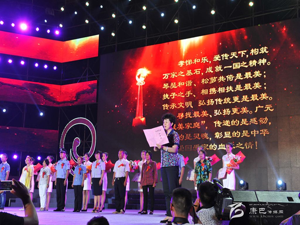 8月31日晚,廣元市隆重舉行“向幸福出發(fā)——尋找最美家庭”家庭文化才藝展演活動暨頒獎典禮。我州丹巴籍農(nóng)婦滕德芬作為20戶廣元市“最美家庭”之一,登臺領(lǐng)取了“最美家庭”榮譽(yù)證書。圖為省婦聯(lián)副主席張懷青致頒獎詞。