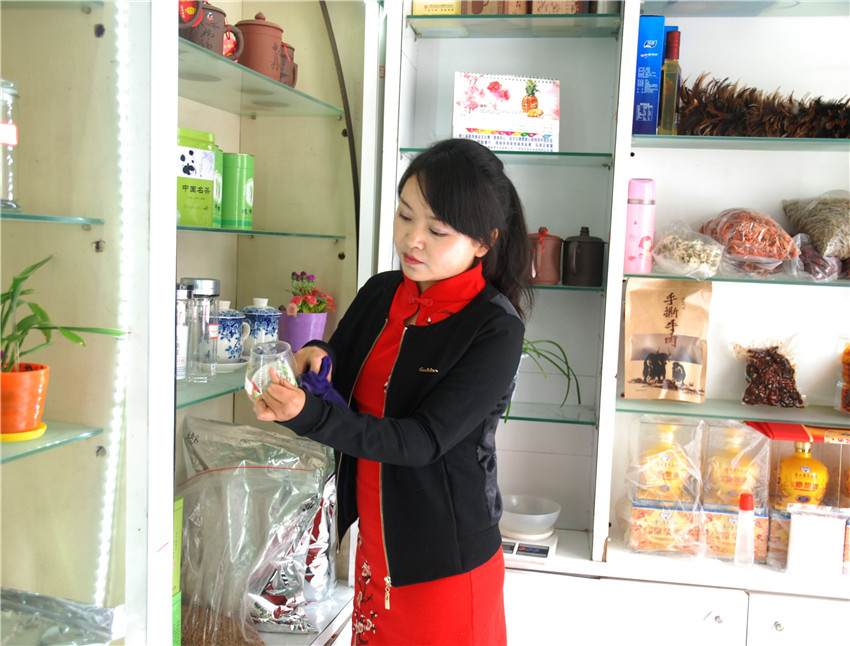 康復(fù)后的朱靈自主創(chuàng)業(yè)開辦茶行。